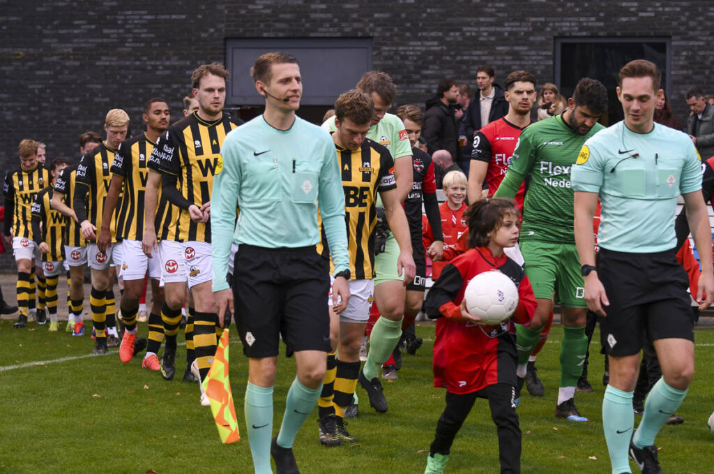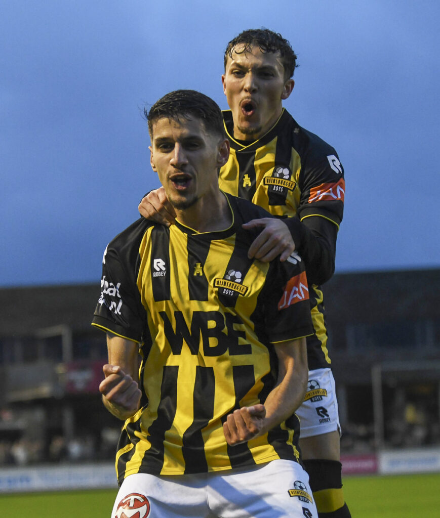 Opstelling Rijnsburgse Boys: Wesley Zonneveld, Daan Walraven, Mitchell Zwart (66. Thomas van Haaften), Rob Zandbergen, Thibo Agyeman (46. Jesse Buurmeester), Steff van Rooijen, Nino Klaver, Jeroen Spruijt (82. Azeddine sout), João Simões (66. Ezechiël Fiemawhle), Mark van der Weijden en Ilias Kariouh