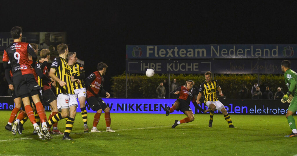 Even later viel de verdiende 1-1 alsnog. Een mislukte vrije trap van Kariouh kwam via een omweg weer voor zijn voeten terecht, waarna hij snoeihard raak schoot. Daarmee stond ook de ruststand op het bord.