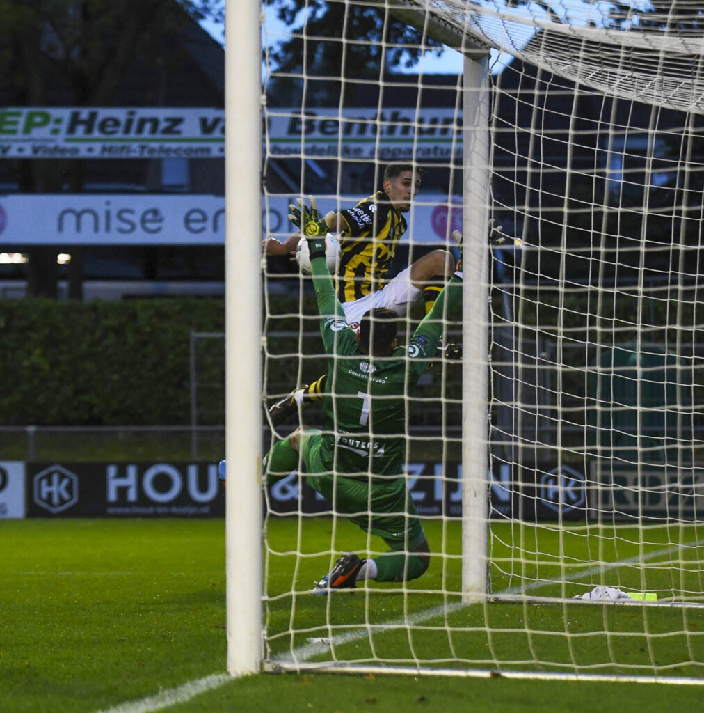 Vijf minuten later was het wel raak aan de andere kant. Opnieuw na een corner kopte Van Strien vrijstaand de 1-0 binnen. Rijnsburg leek even van slag, maar kreeg direct daarna een enorme kans op de gelijkmaker. Eerst redde Wesley Zonneveld knap toen De Treffers erdoorheen brak, daarna was het Rijnsburg dat via Mark van der Weijden bijna scoorde, maar keeper Stoskovic wist ternauwernood redding te brengen.