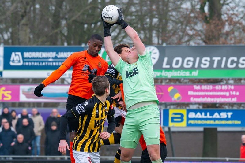 Opstelling Rijnsburgse Boys: Wesley Zonneveld; Thomas van Haaften, Rob Zandbergen (87. Azeddine Sout), Daan Walraven; Jeroen Spruijt (75. Thibo Agyeman), Younes Tufi, Nino Klaver (46. Johan de Haas), Steff van Rooijen; João Simões (70. Ezechiël Fiemawhle), Mark van der Weijden, Ilias Kariouh (87. Joël Tillema).