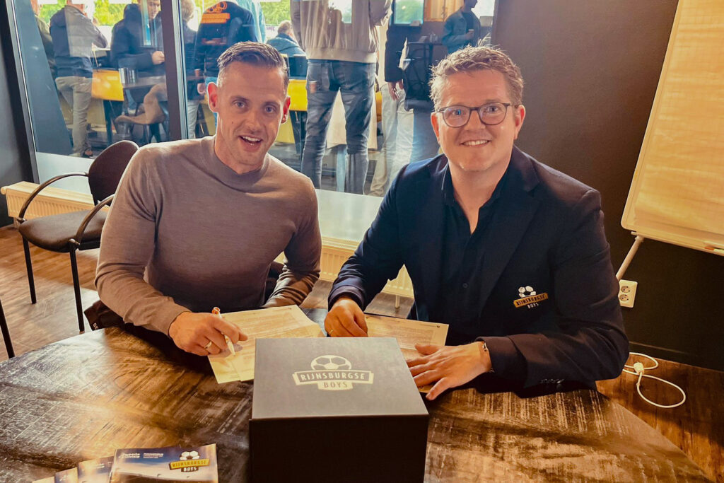 Tijdens een feestelijk moment tekenden Hans van Delft van Kariflex en voorzitter Peter Heemskerk het sponsorcontract.