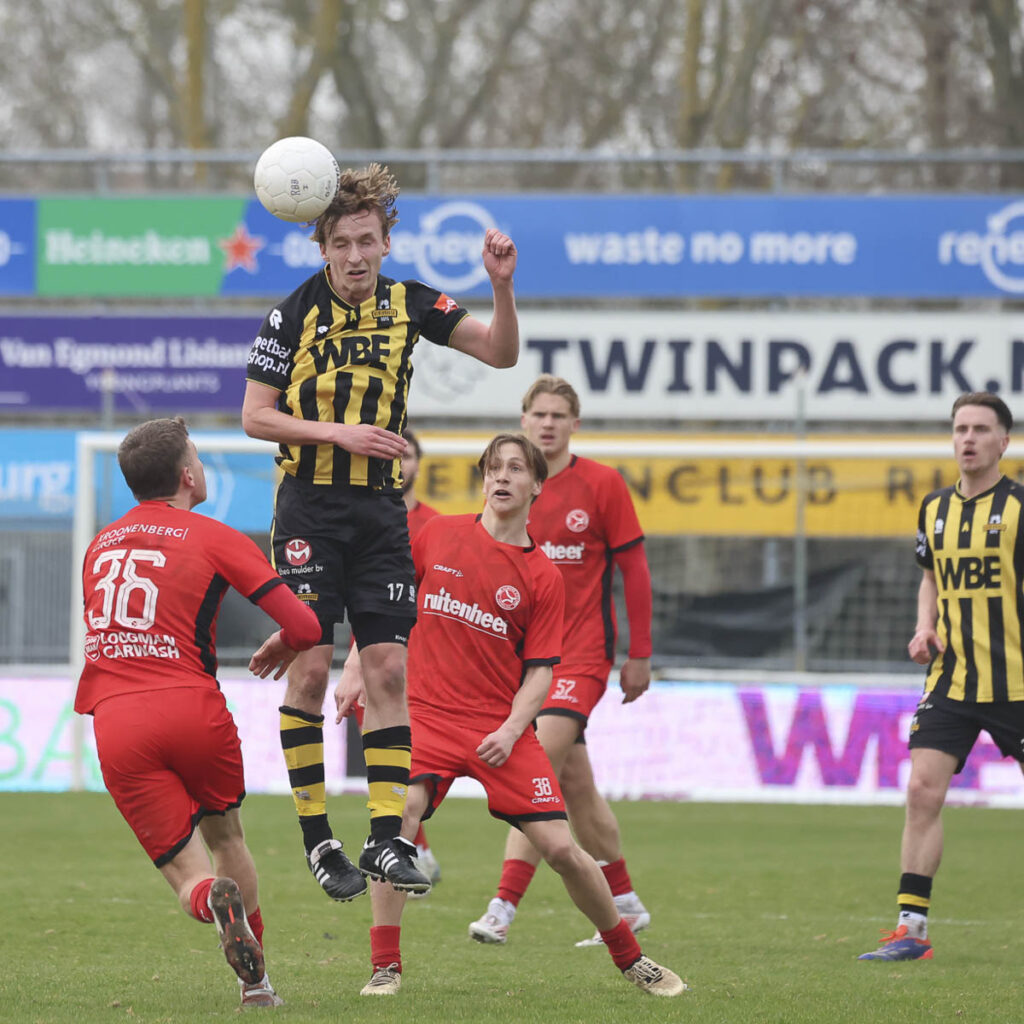 Van het sterke Rijnsburgse Boys uit de eerste helft was na rust weinig meer over. Verschillende spelers kampten met pijntjes en Rijnsburg kreeg minder grip op de wedstrijd. Daardoor kon Jong Almere City steeds meer druk zetten en kansen creëren. Voor Rijnsburg werd het dus oppassen, want de voorsprong was nog altijd ‘slechts’ 2-0.