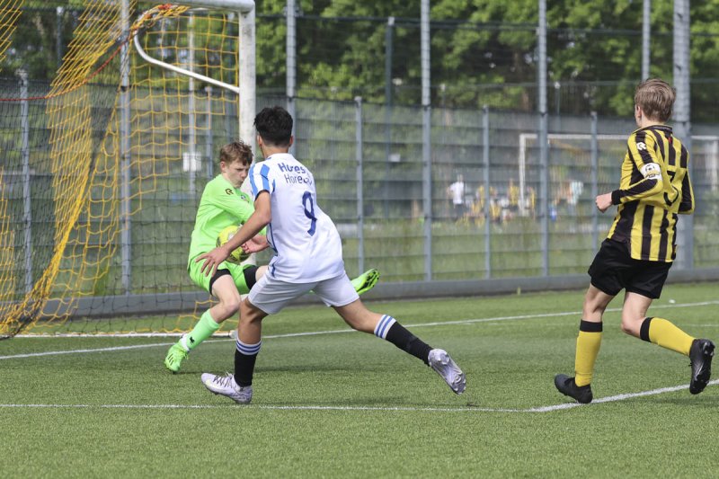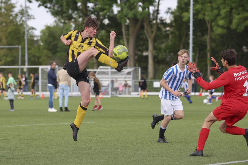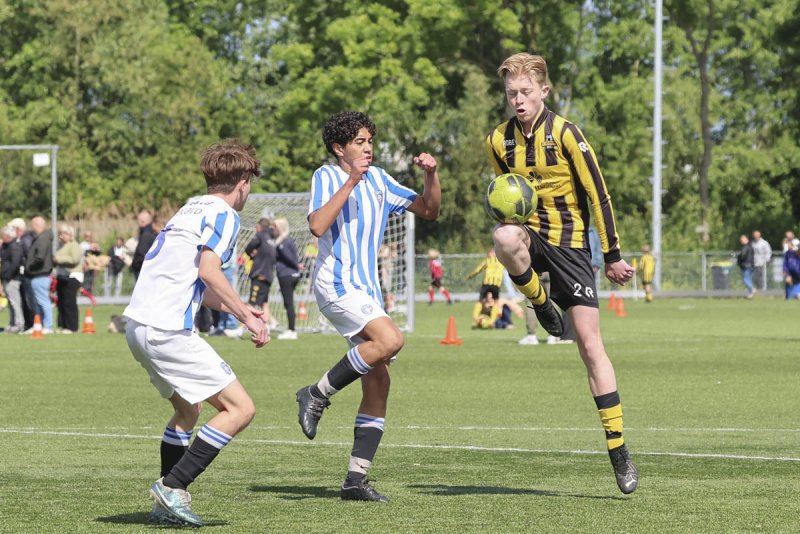 De eerste helft ging het redelijk gelijk op met aan beide kanten enkele kansen. Beide teams speelden vaak de lange bal waarna de voorhoede het verder mocht uitzoeken. Dat is wel besteed aan Danny, Stan, Roan en Thomas. Die bleven keer op keer proberen om iets moois te halen uit die diepe ballen. Hierbij speelden de middenvelders Mike, Luuk, Jim en later Vince ook een belangrijke rol. Die waren ook regelmatig voorin te vinden. Achterin moesten Len, Sem, Mitchell en Thomas de boel dichthouden. Samen met keeper Luuk.