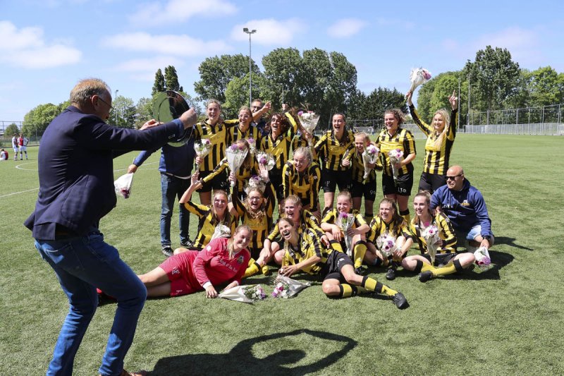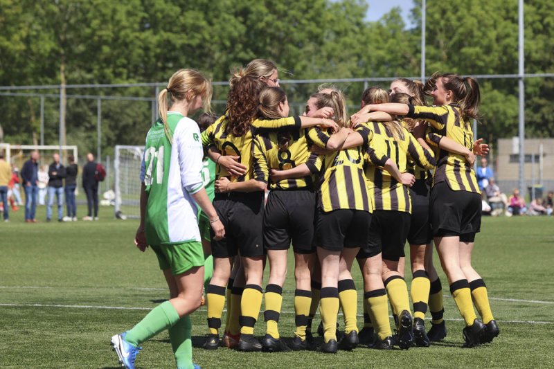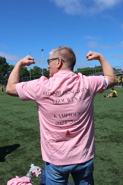 In de tweede helft moest het karwei worden afgemaakt. Rijnsburg bleef rustig rondspelen en bouwde zorgvuldig op. De 4-0 viel en het kampioenschap kwam steeds dichterbij. Er moest wel nog een tegengoal geïncasseerd worden maar dat mocht de pret niet drukken. De dames wisten nog een keer te scoren en met de 5-1 maakten zij het feest compleet.