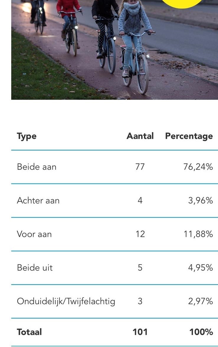 Onze vraag aan ouders of zij willen checken of de fietsverlichting het doet. Niemand wil een bericht krijgen dat zijn/haar kind aangereden is omdat deze niet goed zichtbaar was.